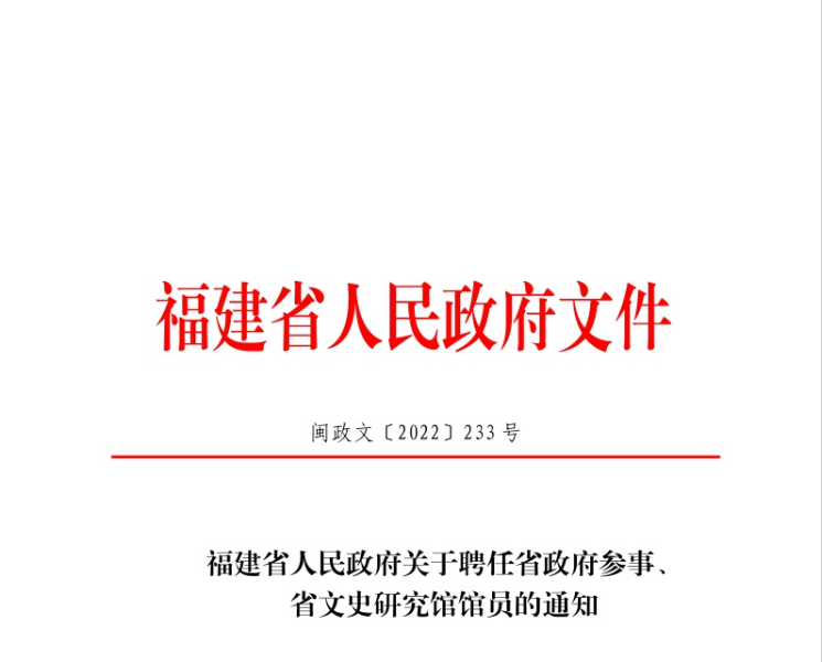 福建省人民政府關(guān)于聘任省政府參事、省文史研究館館員的通知