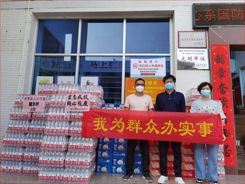 眾志成城,同心抗疫!總經(jīng)理蔣無(wú)盡(豐澤區(qū)人大代表)代表公司向豐澤區(qū)東湖街道捐贈(zèng)抗疫物資:100件礦泉水,100件八寶粥及花生牛奶,助力抗疫!泉州加油!