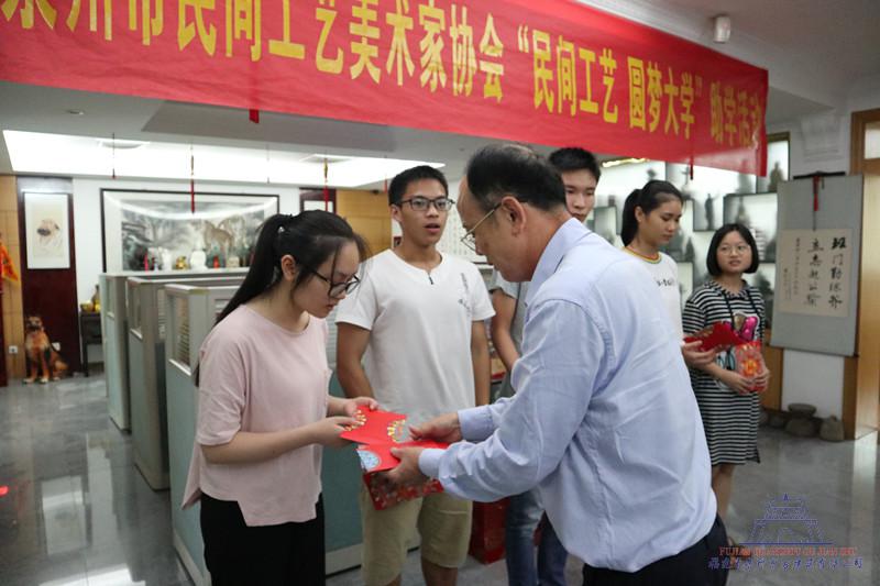 8月23日下午,泉州市民間工藝美術(shù)家協(xié)會 “民間工藝 圓夢大學”助學活動在我司辦公樓舉辦。公司董事長蔣欽全為協(xié)會主席。泉州市委宣傳部副部長兼泉州市文聯(lián)主席許旭明、民進…