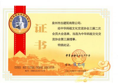 經(jīng)中華媽祖文化交流協(xié)會(huì)三屆二次會(huì)員大會(huì)選舉,我司當(dāng)選為中華媽祖文化交流協(xié)會(huì)第三屆理事。