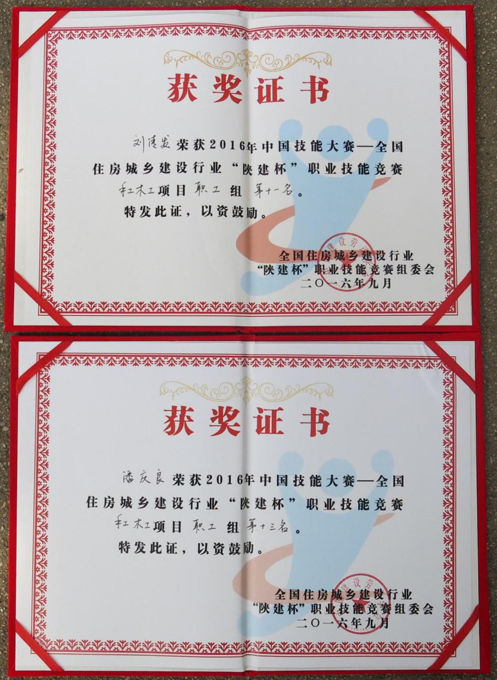 2016年中國技能大賽—全國住房城鄉(xiāng)建設(shè)行業(yè)“陜建杯”職業(yè)技能競賽于9月25日圓滿落幕,我司團隊榮獲“優(yōu)秀組織獎”,參賽隊員取得全國第十一名及第十三名的好成績。
