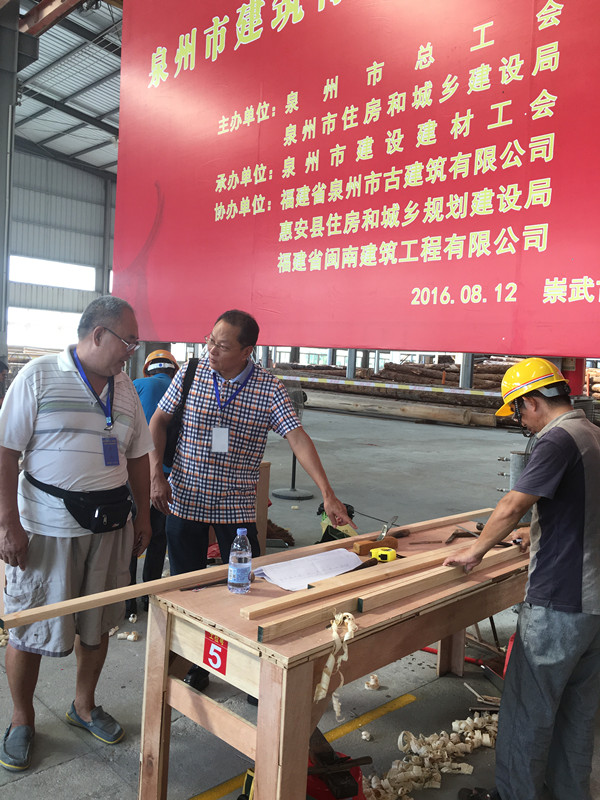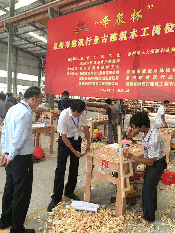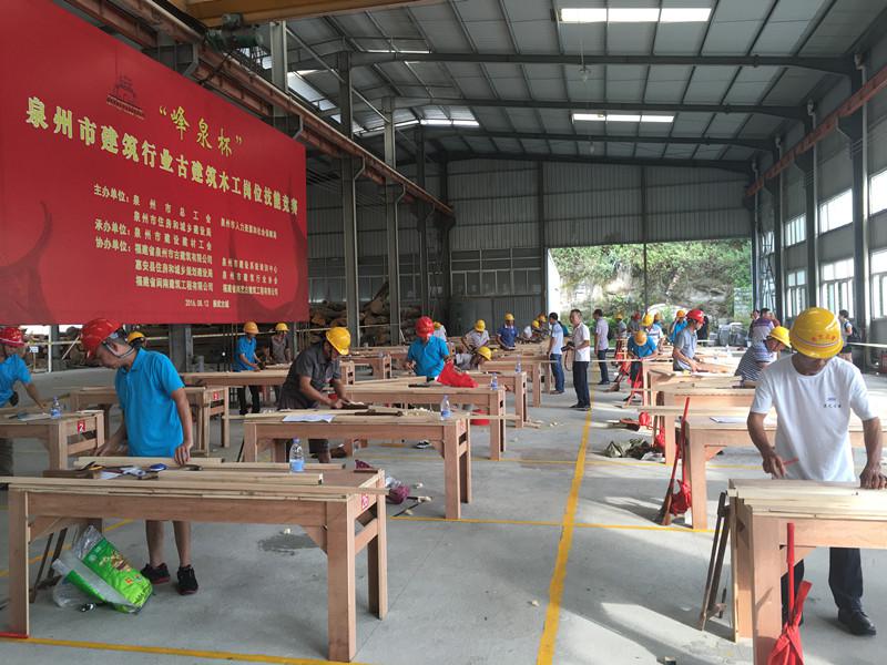 2016年8月12日,泉州市總工會、泉州市人力資源和社會保障局、泉州市住房和城鄉(xiāng)建設(shè)局、泉州市建設(shè)建材工會主辦,我司等單位協(xié)辦的泉州市建筑行業(yè)“峰泉杯”古建筑木工崗位技能競賽在惠安崇武圓滿落幕。