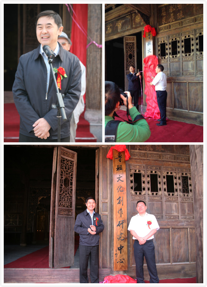 2014年10月13日上午,福建省泉州市古建筑有限公司董事長(zhǎng)蔣欽全與中國(guó)當(dāng)代文物古建界泰斗、已故羅哲文大師夫人楊靜華、中國(guó)民間文藝家協(xié)會(huì)駐會(huì)副會(huì)長(zhǎng)、分黨組書記羅楊,以及泰寧縣委書記張?jiān)鳌⑻幙h旅游管理委員會(huì)黨委書記廖晶波、福建省民間文藝家協(xié)會(huì)秘書長(zhǎng)陳曉萍等參加泰寧“魯班文化創(chuàng)作研究中心”揭牌儀式。